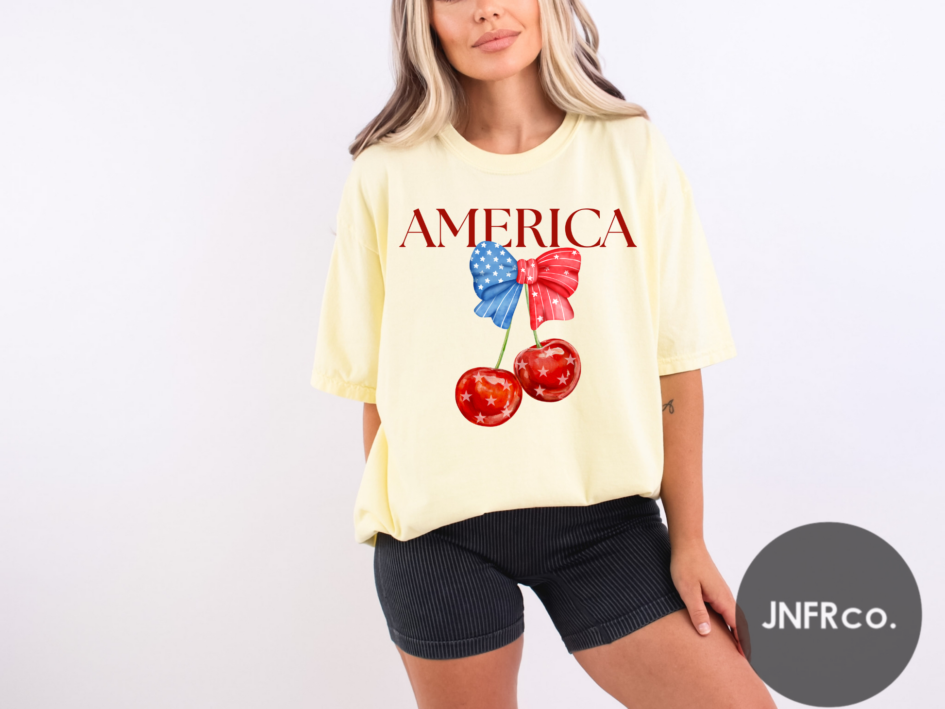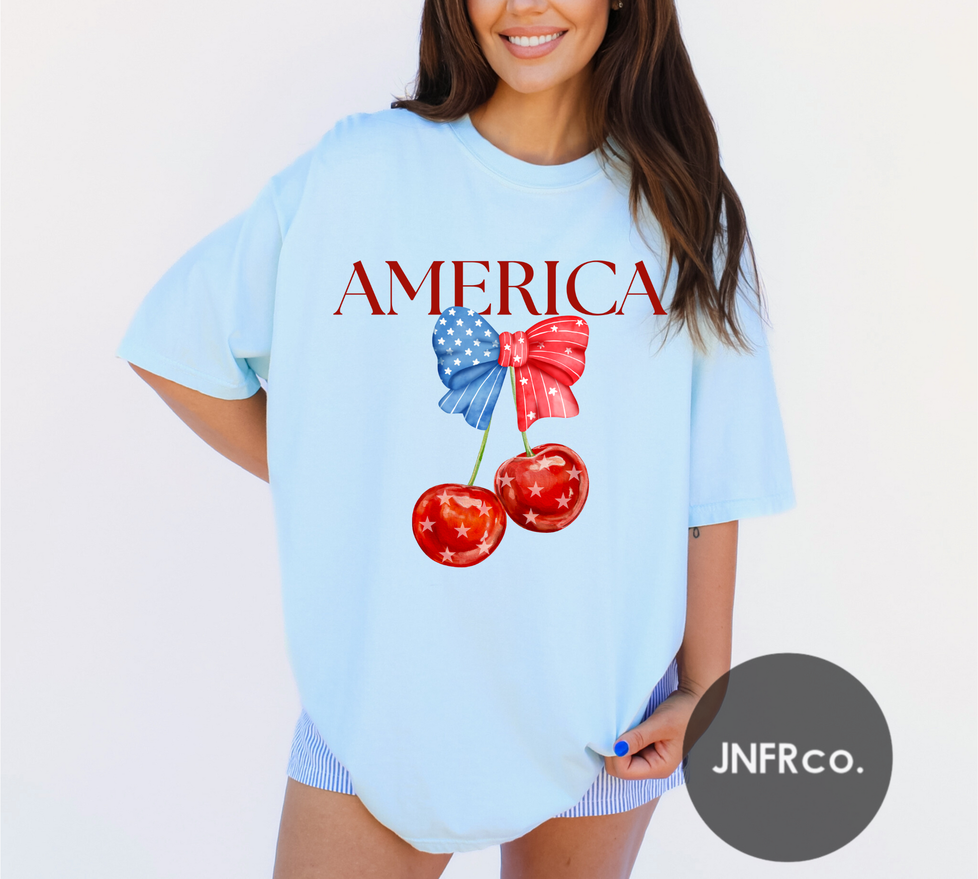 American Cherries Red White & Blue Bow T-Shirt