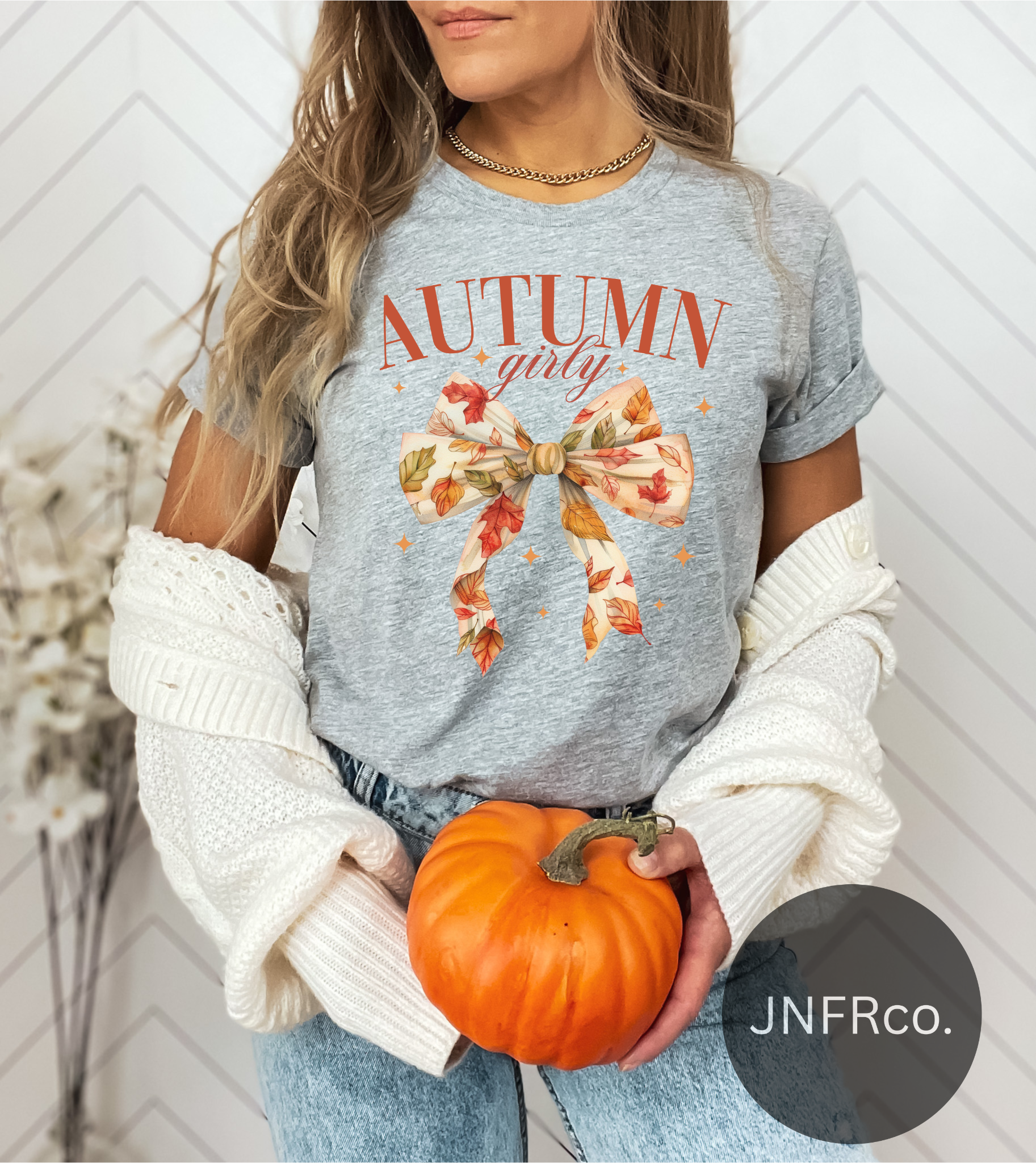 Celebrate the cozy charm of fall with our Autumn Girly T-Shirt! This playful tee brings a splash of seasonal fun to your wardrobe, perfect for crisp days and pumpkin spice vibes. Soft, comfortable, and effortlessly cute, it’s your go-to for layering or wearing solo during autumn adventures. Embrace the season in style!