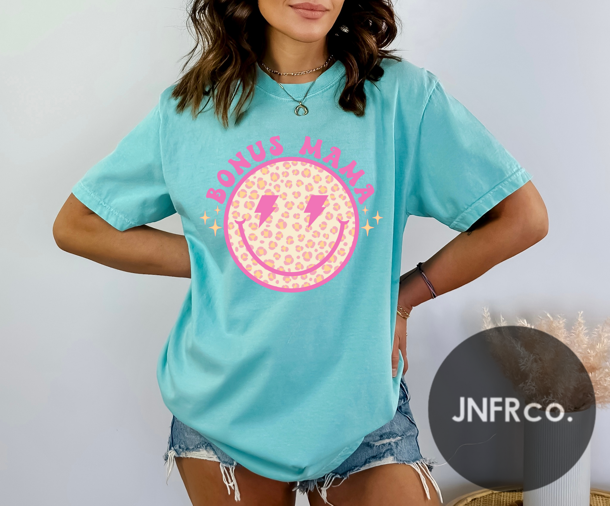 Bonus Mama Bolt Smiley Pink Sparkle - DTF Transfer