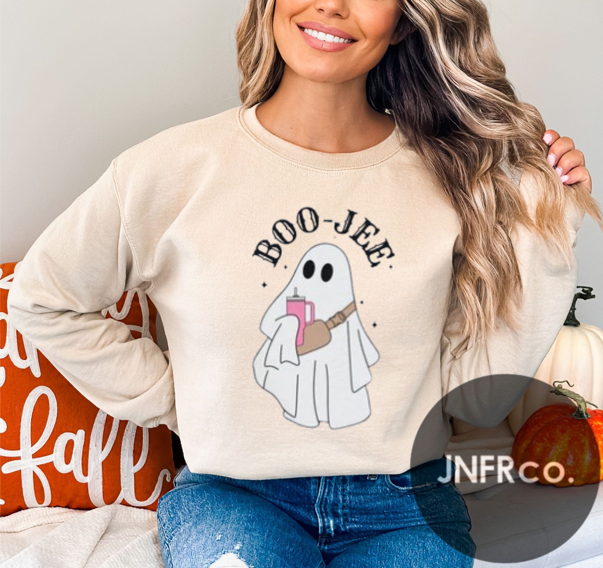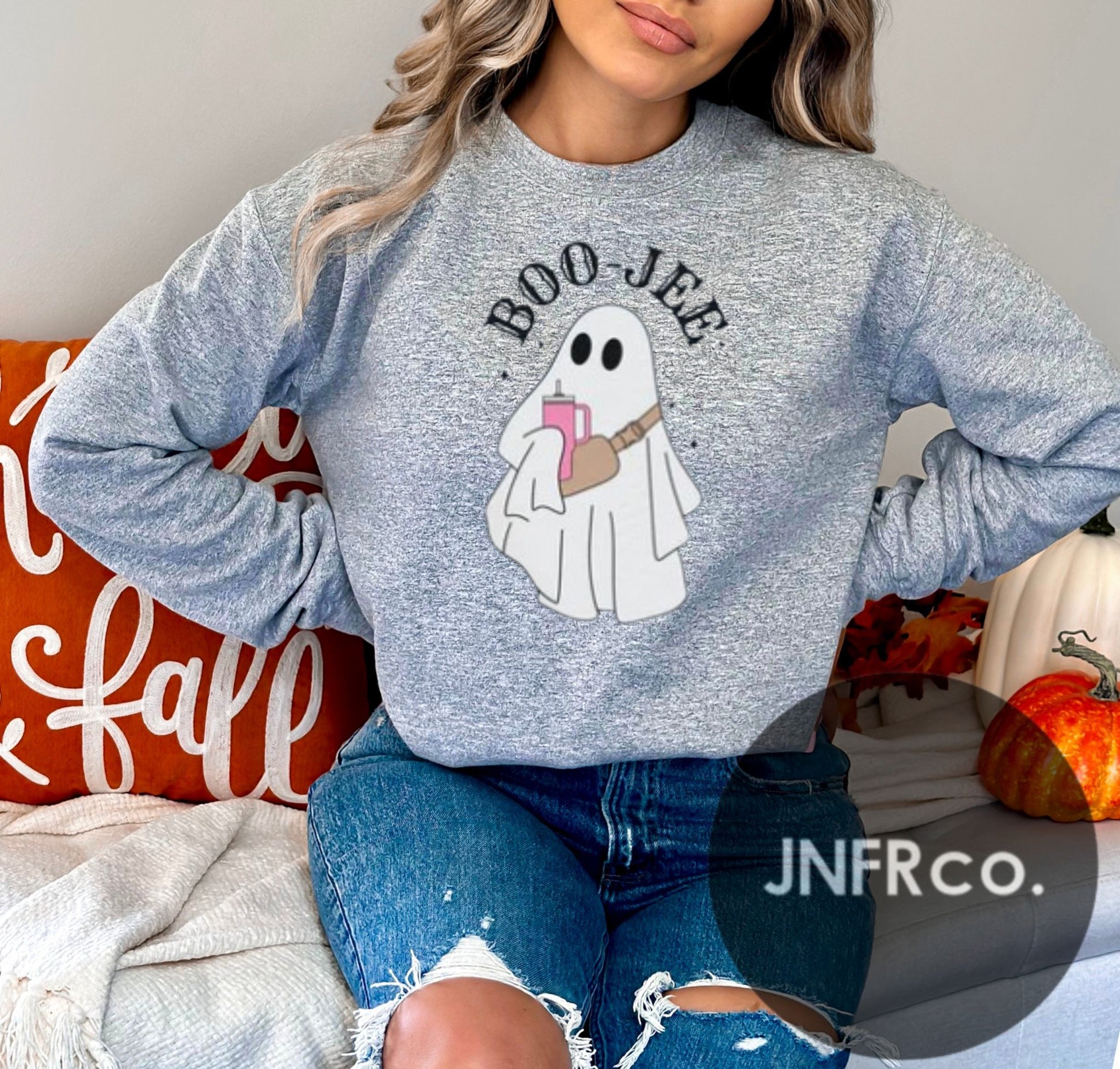 Stay cozy and spooky with the BOO-JEE Ghost Crewneck Sweatshirt! This playful sweatshirt features a fun ghost design that adds a touch of whimsy to your casual look. Perfect for chilly days, it combines comfort and style effortlessly, making it your go-to piece for relaxed vibes and a hint of Halloween spirit all year round.