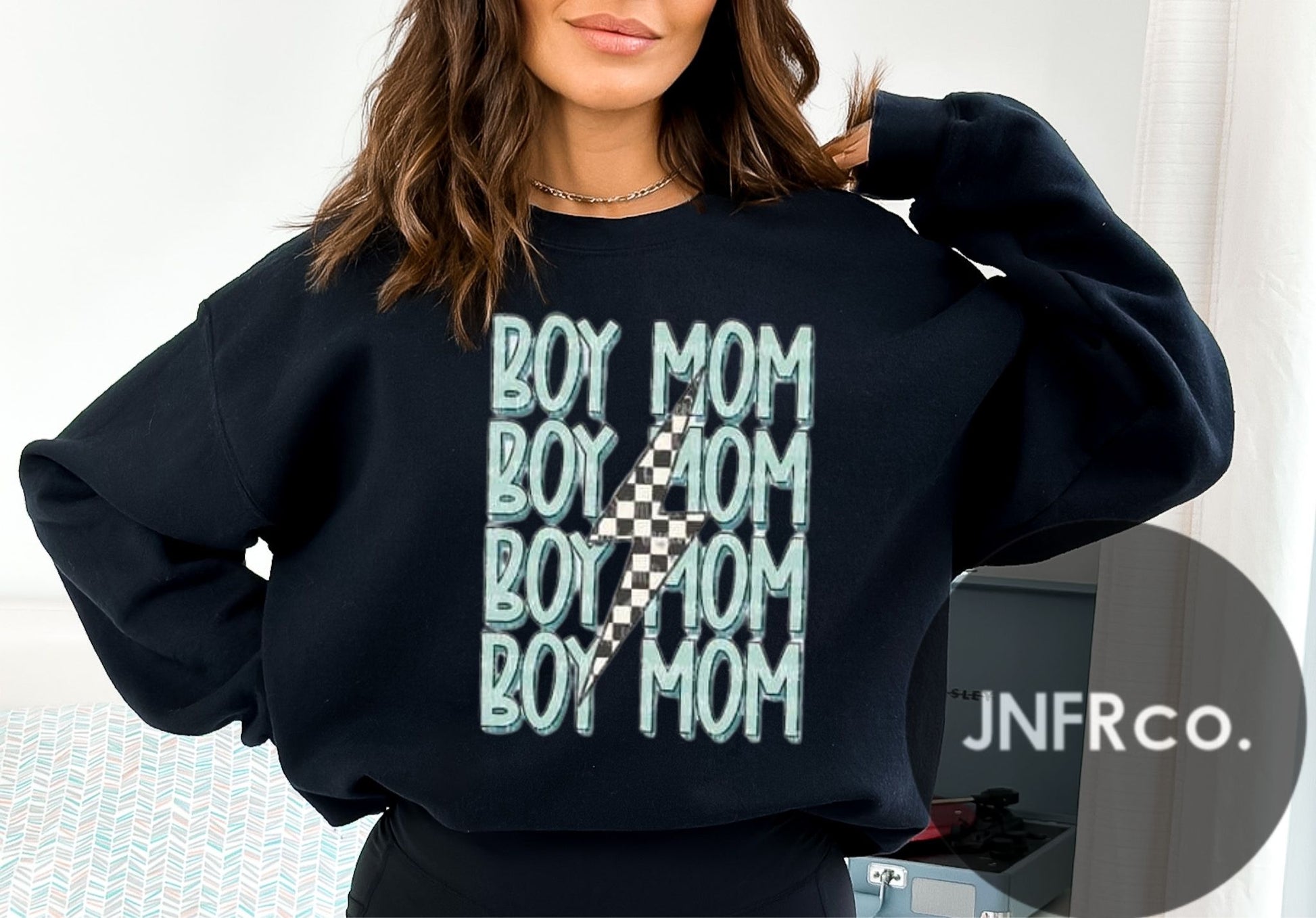 Boy Mom Checkered Bolt Crewneck Sweatshirt