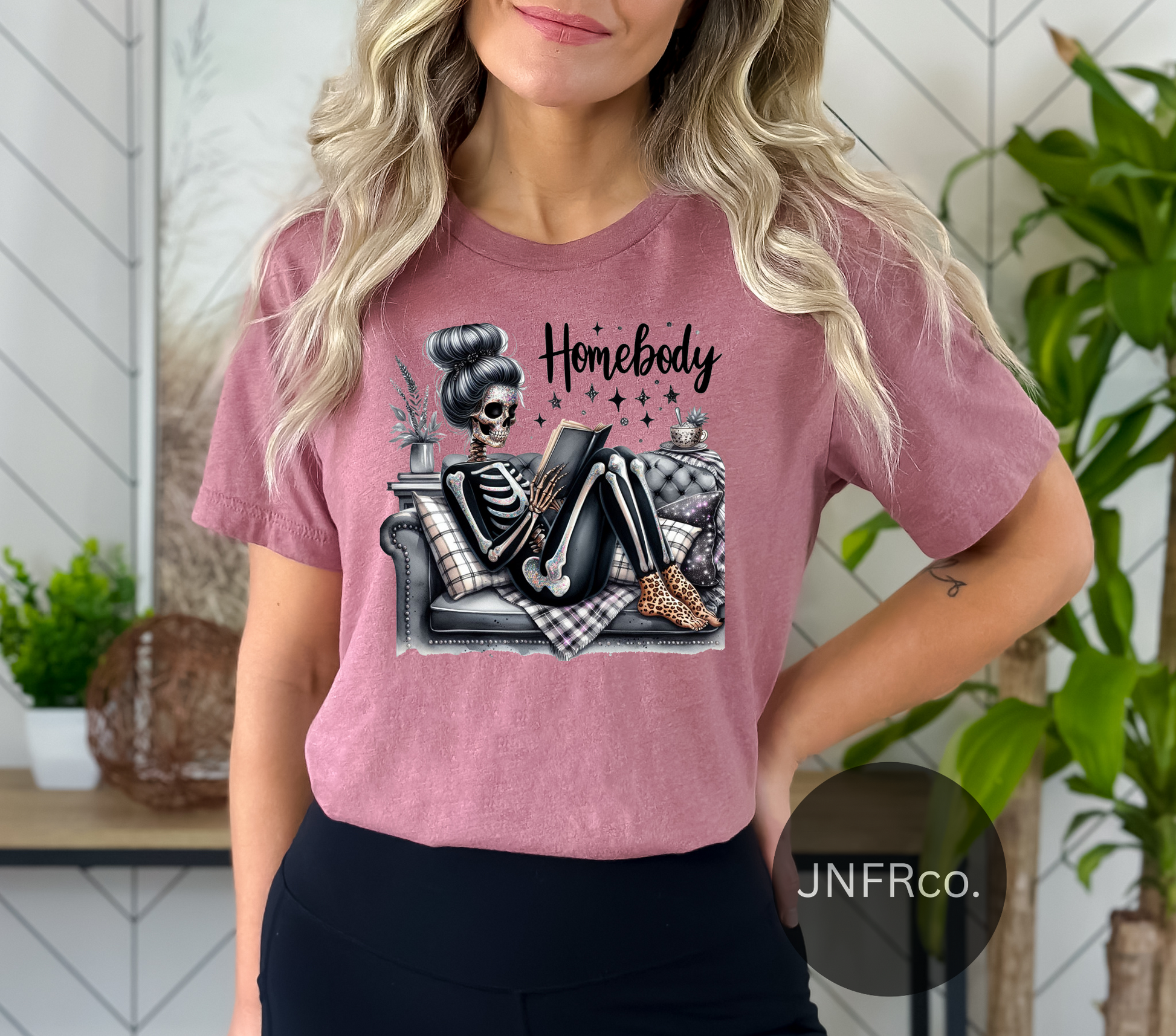 Embrace your cozy vibes with the Homebody Messy Bun Skeleton Girl T-Shirt. This playful tee combines comfort and quirky style, featuring a fun skeleton girl rocking a messy bun. Perfect for lounging at home or casual outings, it’s soft, relaxed, and full of personality—just like you!