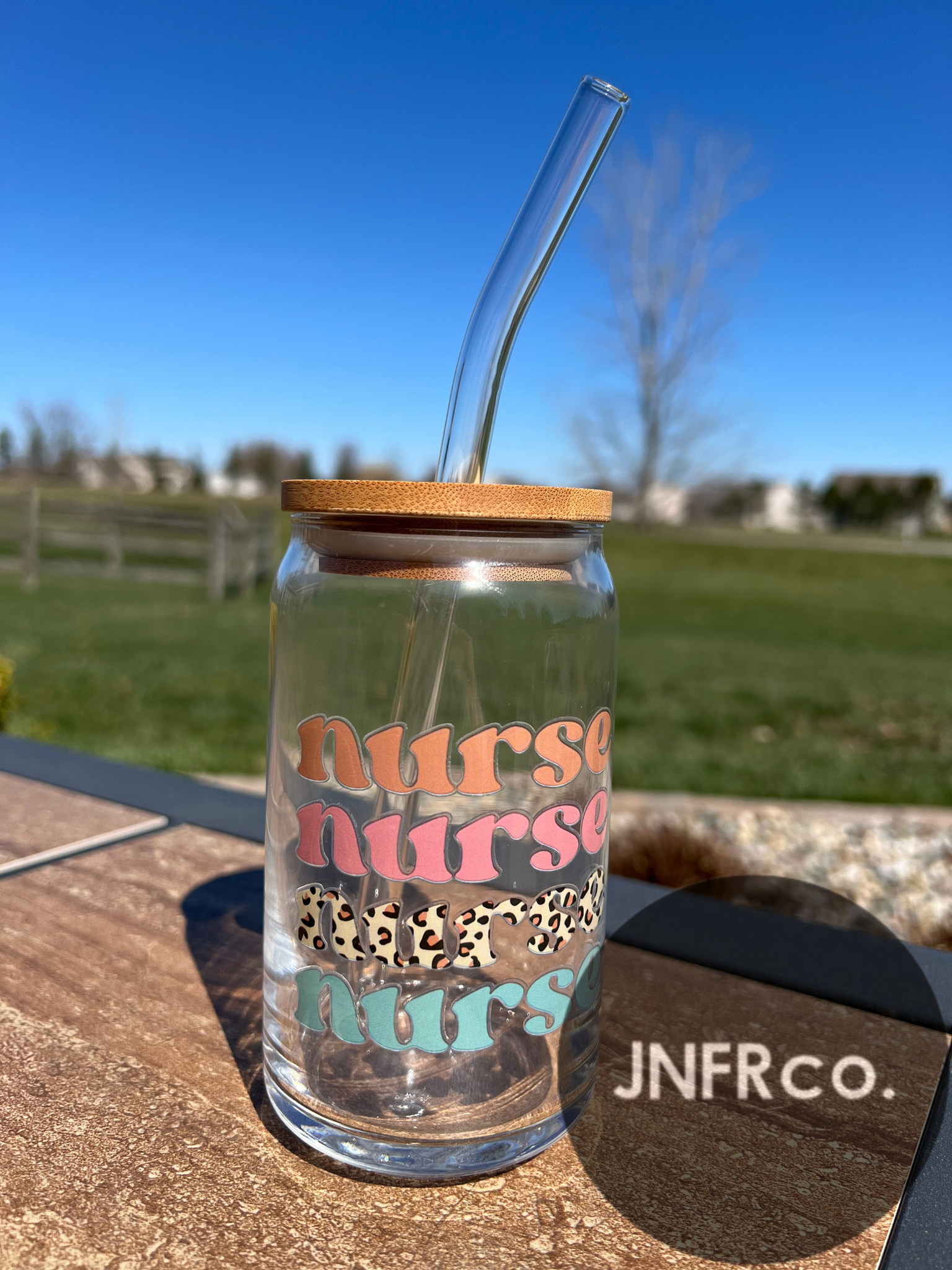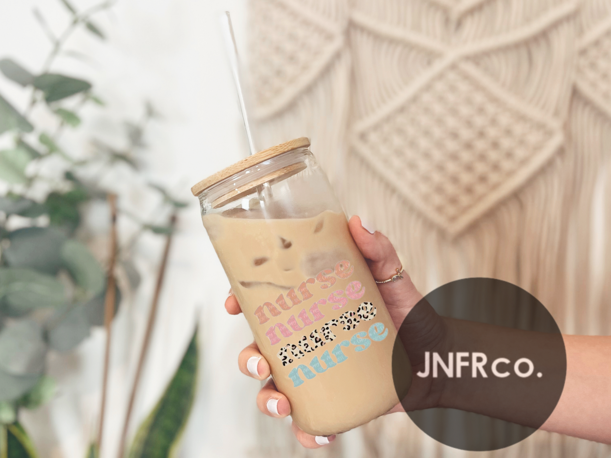 Start your day off with this 16oz. glass can perfect for iced coffee, smoothies, water and more! All of our designs make your drink more fun.