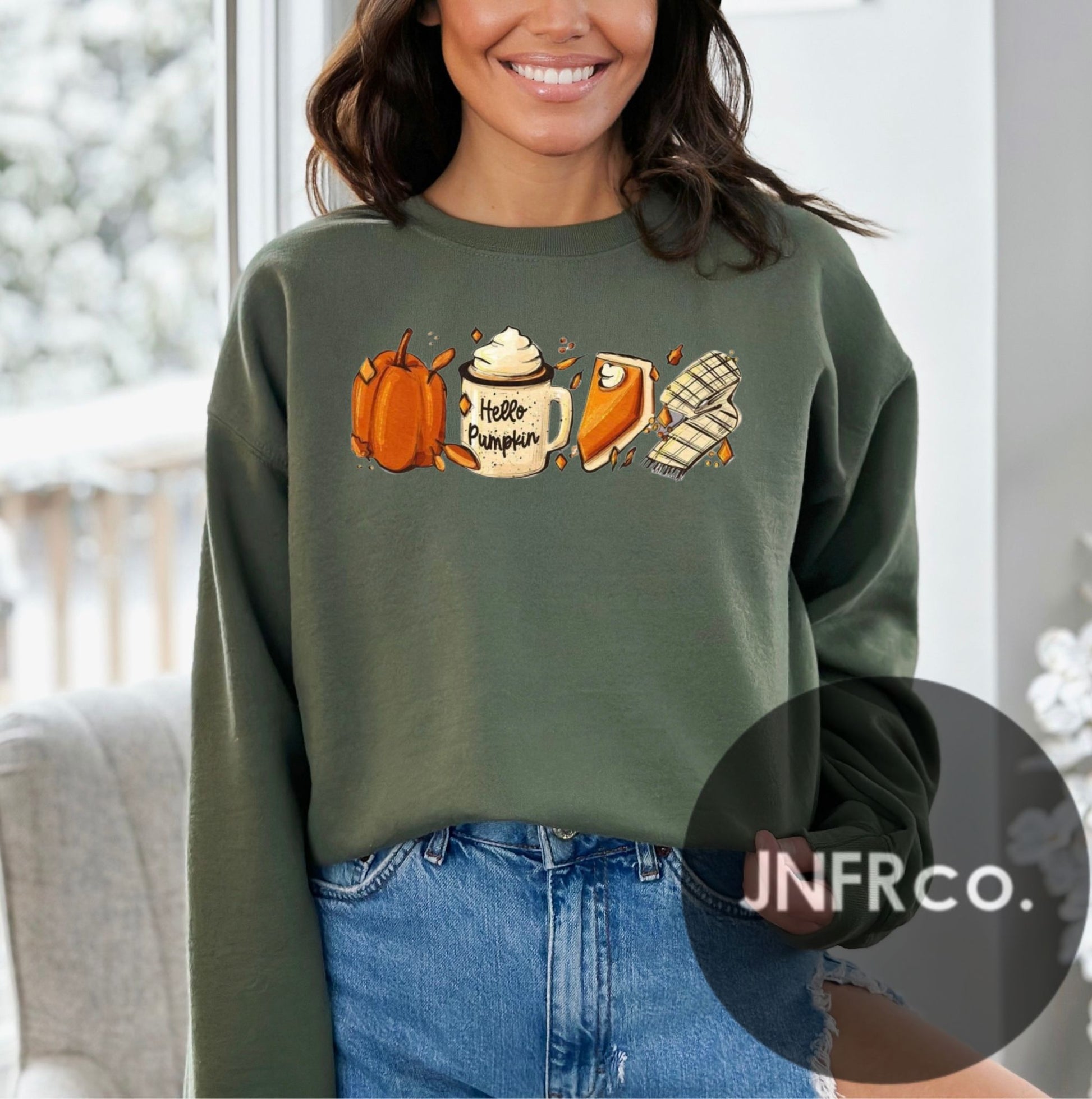 Pumpkin Coffee Pie Scarf Crewneck Sweatshirt