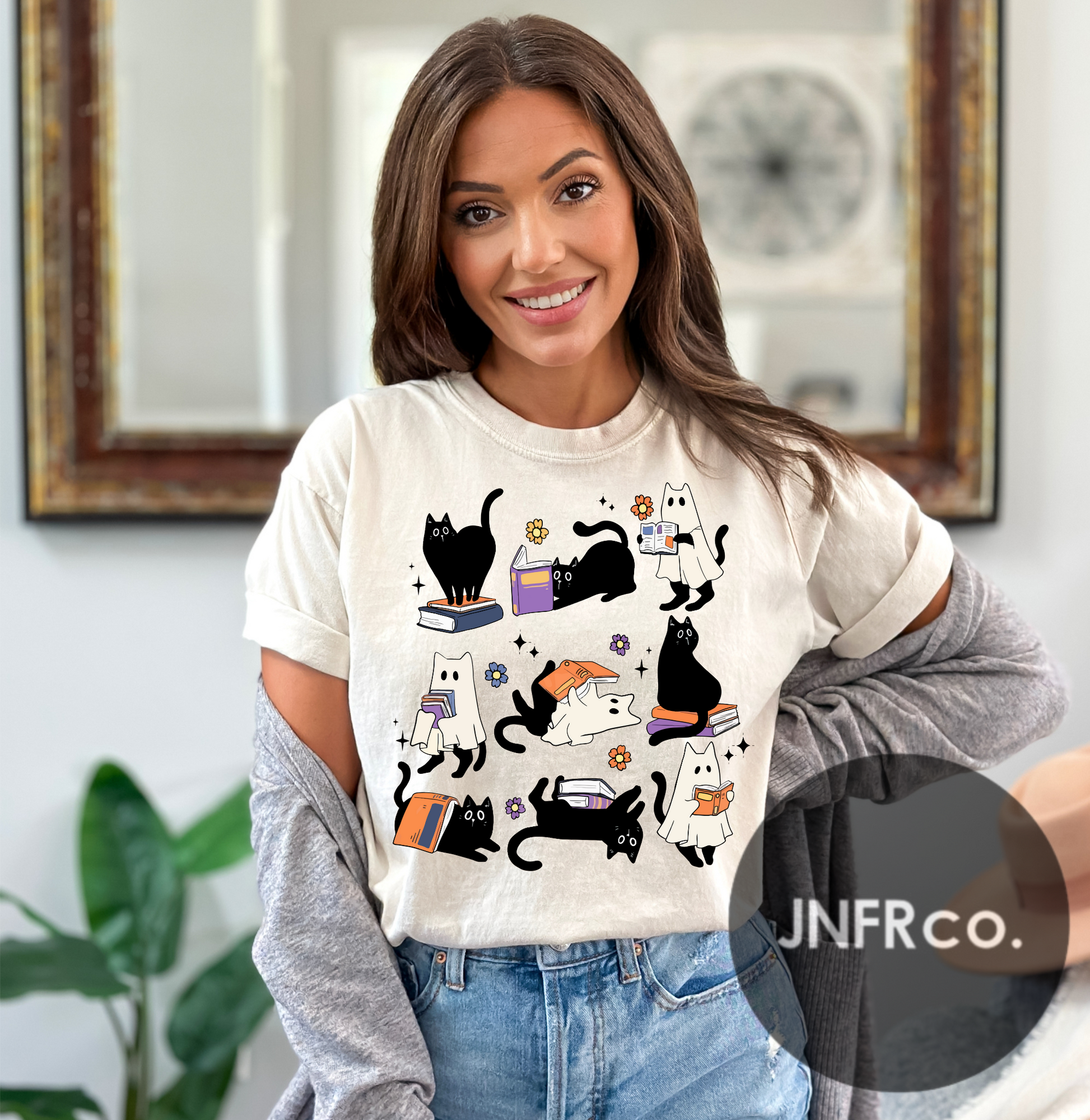 Celebrate your love for spooky vibes and cozy reading with this playful Spooky Cats Reading Comfort Colors T-Shirt. Featuring charming cats immersed in a good book, this soft, comfortable tee is perfect for curling up with your favorite story or adding a touch of whimsy to your everyday look. Its relaxed fit and durable fabric make it a go-to for both comfort and style during the spooky season and beyond.