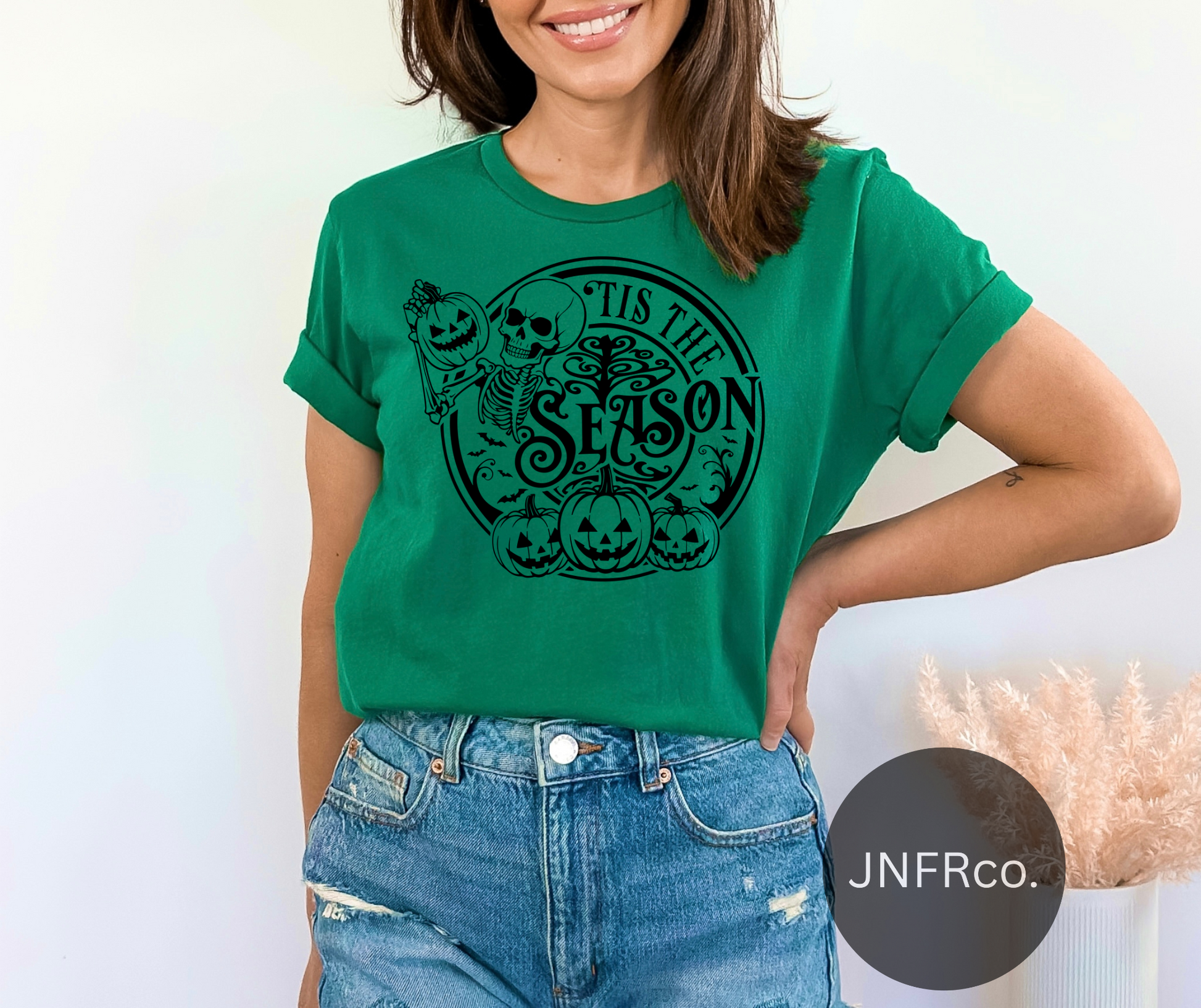 Get into the Halloween spirit with the Tis the Season Halloween Spooky Skeleton T-Shirt! Featuring a fun and eerie skeleton design, this tee is perfect for adding a playful touch to your spooky celebrations. Comfortable and eye-catching, it’s ideal for parties, trick-or-treating, or just showing off your festive vibe all season long.