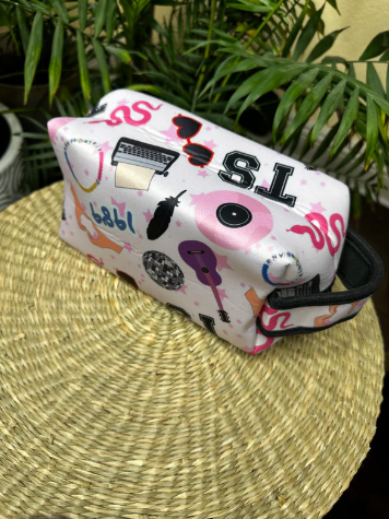 These versatile pouches are the perfect accessory for all your essentials! Whether you're using it for makeup, pencils, travel items, or small accessories, its sleek design and spacious interior offer practicality and style in one. With a nod to her signature aesthetic, it’s an ideal choice for keeping your items organized on the go. Zippered pouches measure 8”L x 3.5”W x 4.5"H and have a handle on one end.